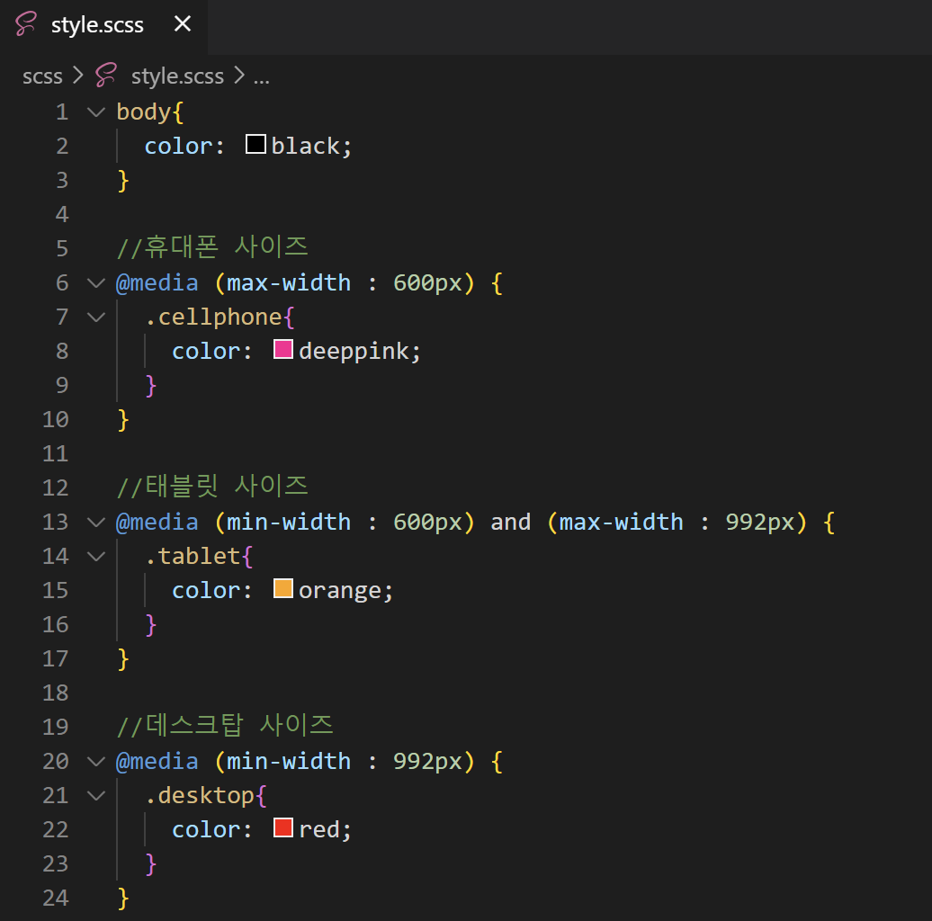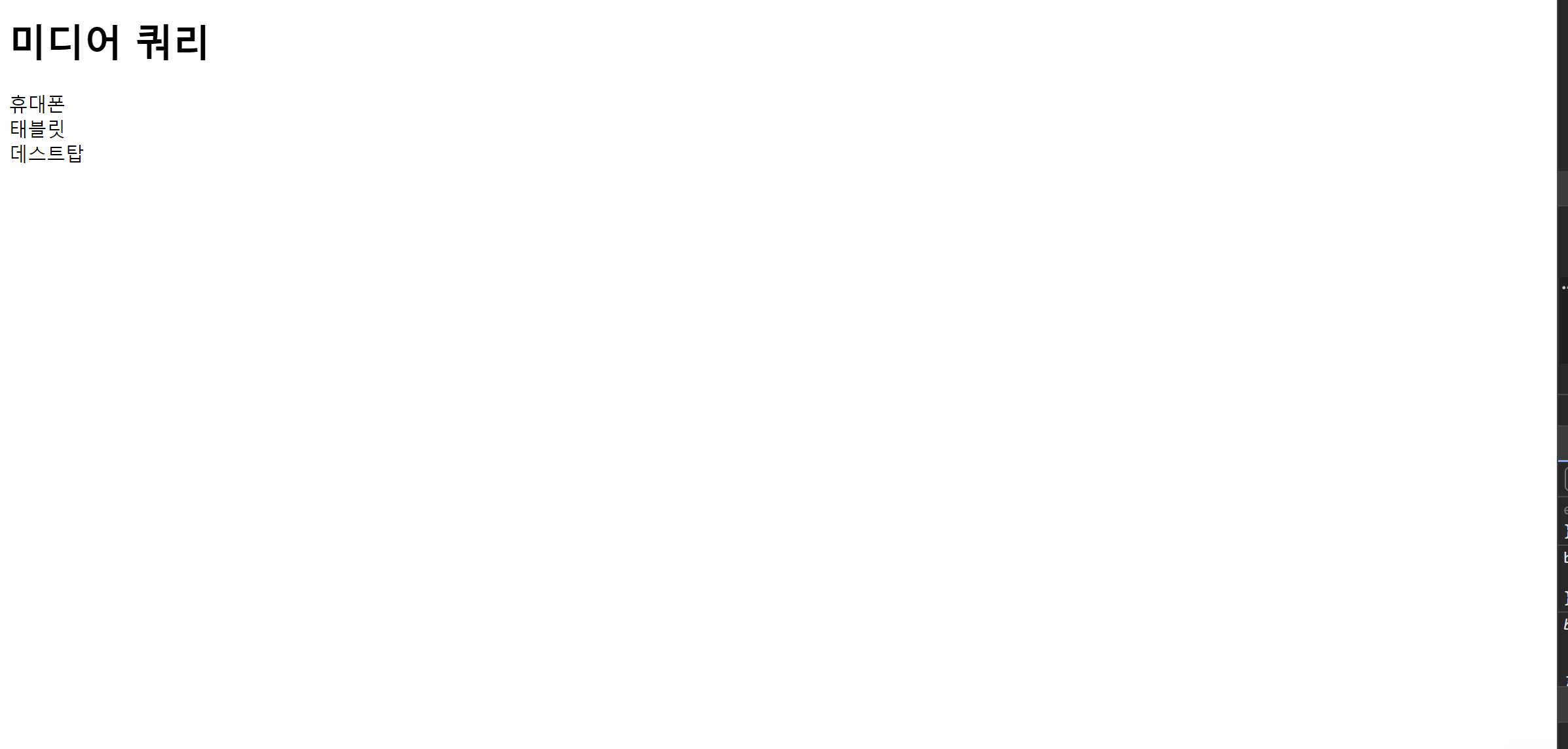 - 태그 선택자, 가상((psuedo)) 요소: div, p 등과 같은 태그 선택자로 문서 내 모든 태그를 가리키기 때문에 범위가 제일 넓고, 가장 낮은 명시도를 갖는다.