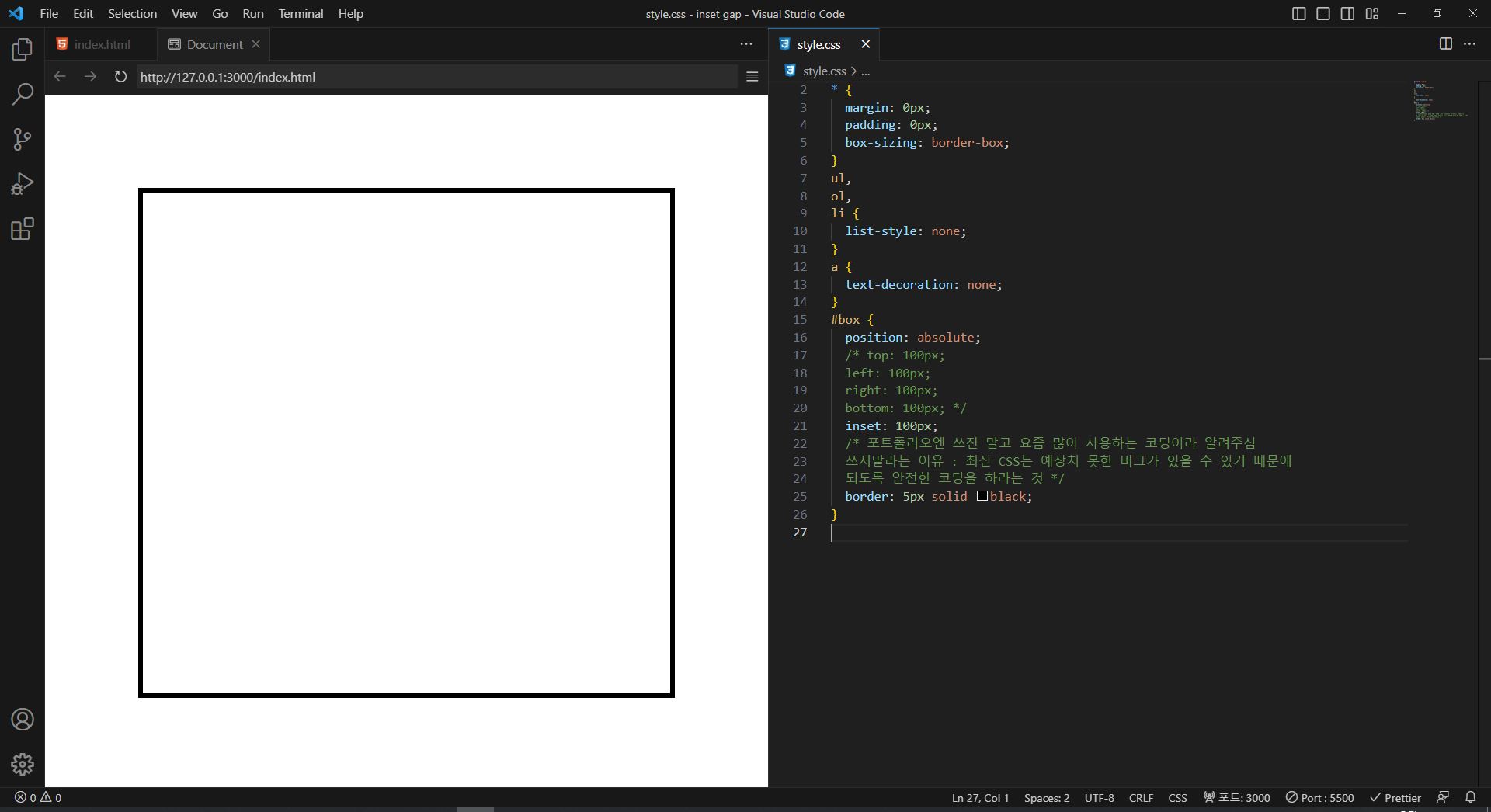 **인라인 스타일 정의도 가능한 사용하지 말자. (스타일 디버깅을 어렵게 한다)